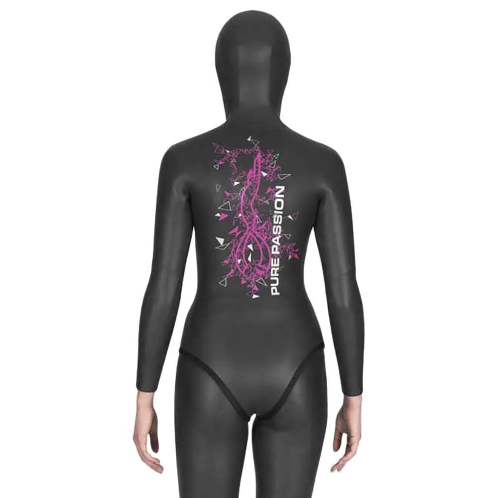 The women´s Prism Skin 50 freediving suit jacket is made of 5mm neoprene which is lined on the inside for easy donning and smooth on the outside to reduce friction when swimming underwater, allowing for faster descents and ascents.