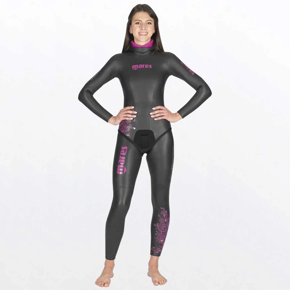 The Mares Prism Skin 50 freediving suit jacket for women is made of smooth, ultra-elastic neoprene. Its extreme flexibility allows easy breathing and maximum comfort. Its exclusive inner lining also makes it easy to wear. The smooth 5mm neoprene material offers excellent elasticity and exceptional thermal properties, increasing warmth and the ability to move freely in the water.