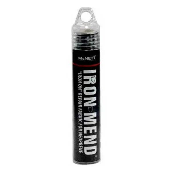 Iron-on repair fabric. Provides strong, flexible, permanent repairs for neoprene. Lined with Barritex™ for extra abrasion resistance. Iron Mend may be used to repair neoprene dry suits, wet suits, waders, neoprene gloves and boots, orthopedic supports, and lycra body suits. Includes: 10´ x 6´ Knee-Pad Patch, Reusable Heat Shielding and Detailed Instructions.