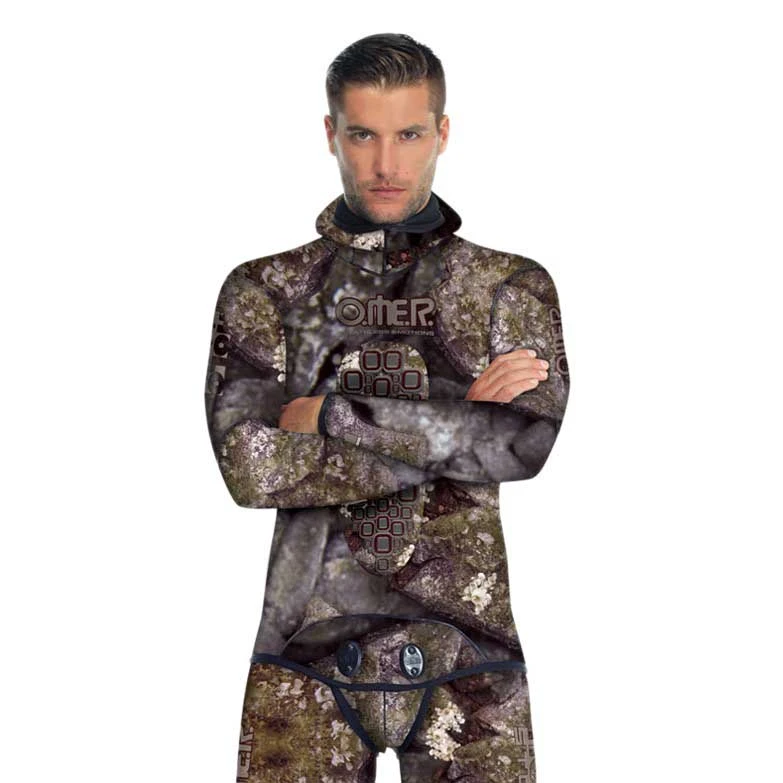 Omer Holo Stone Jacket 3 mm allows you to dive with thermal protection in moderate temperature waters, due to the thickness of 3 mm. The exclusive photographic camouflage makes you go unnoticed thanks to the sharp and blurred design of the seabed.