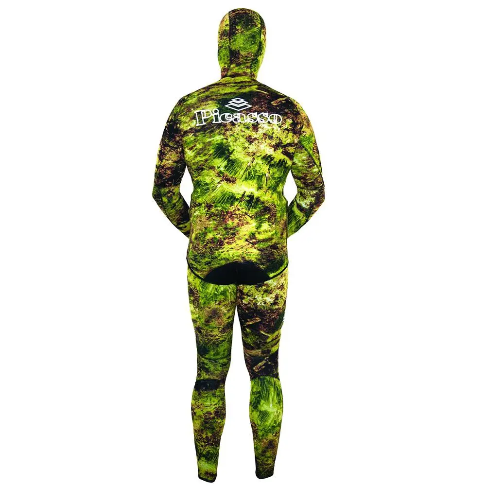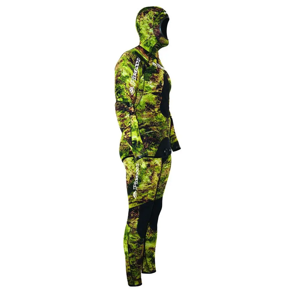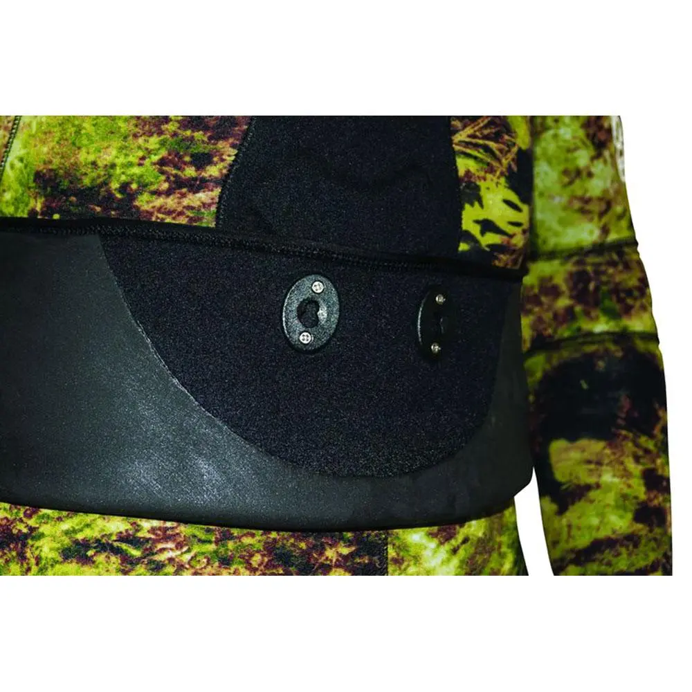 New camouflage wetsuit in green tons, selected to work well in every type of seaweed bottoms Top quality super stretchy YAMAMOTO Japanese neoprene nylon externally and open cell interior New ultra ergonomic cut Supratex ( anti-cut fabric ) reinforced knees Long padded chest protection Face, wrists and ankle ultra stretch water seals Jacket and pants can be bought separately and are available in 3mm, 5mm and 7mm High waist or Long john trousers