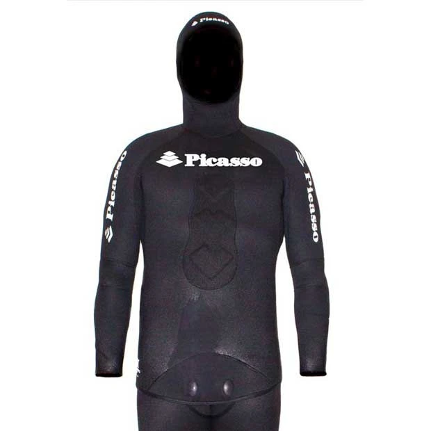 Yamamoto top quality neoprene, Black color externally and open cell interior.New improved preformed cut, with Supratex ( very resistant fabric ) reinforcements on the chest!