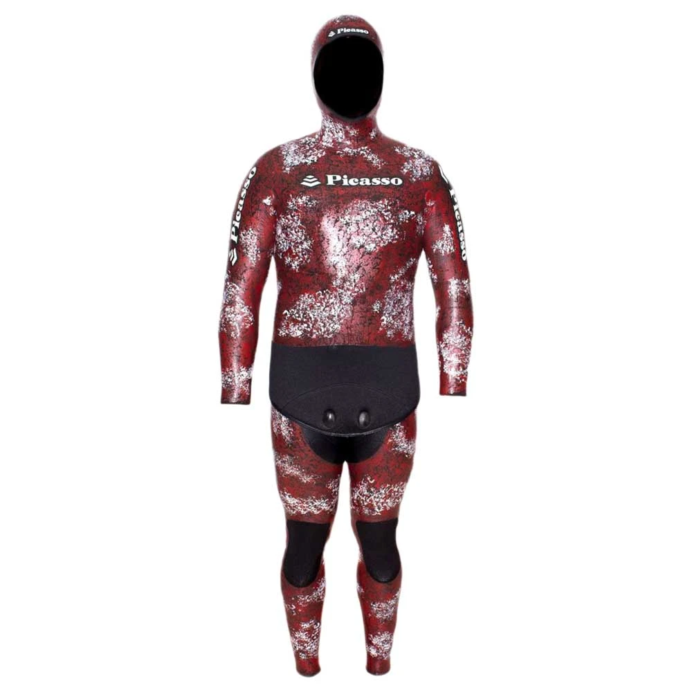 Produced using the best Japanese neoprene, interior in open cell for the best adherence to the skin ( warmer and less abrasive than fabric ), it is very stretchy, but has a very good compression memory, not to suffer big variations in deeper dives and that way be warmer and with a bigger lifetime durability.Big interior chest pad to assist gun loadingKnees protections in fabricFabric between the legs, to protect from beaver tail abrasion