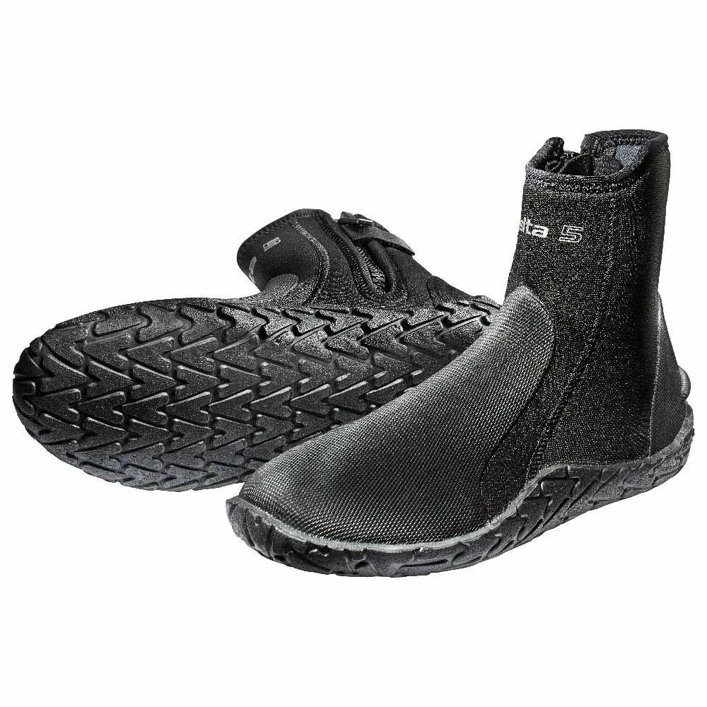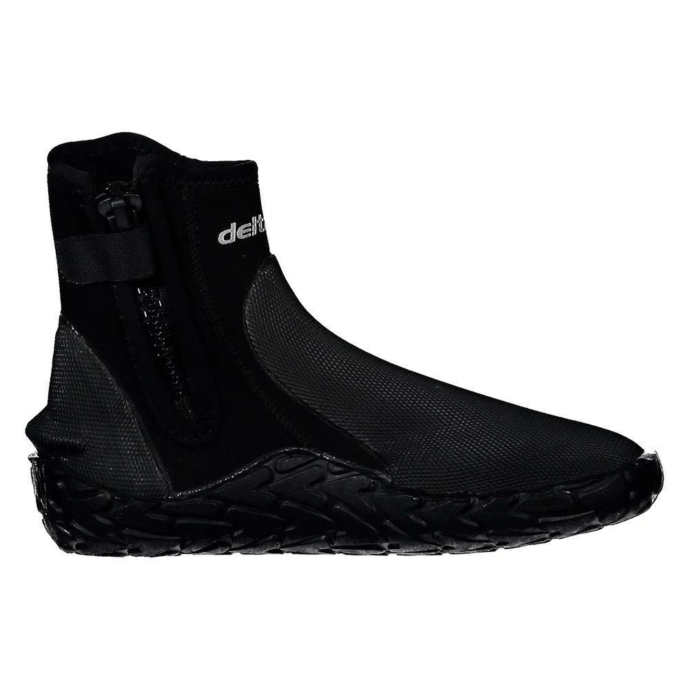 Easy-to-Wear Zippered Boot is Perfect for Temperate- and Cold-Water Diving. The DELTA 5MM has a sturdy but flexible outsole and good rubberized protective armor, yet it still feels light on the foot. Built-in arch support and a full cut create a comfortable, cramp-free fit, even for wide-shaped feet. The reinforcement on the top of the foot provides both cushion and protection against the edge of the fin pocket.