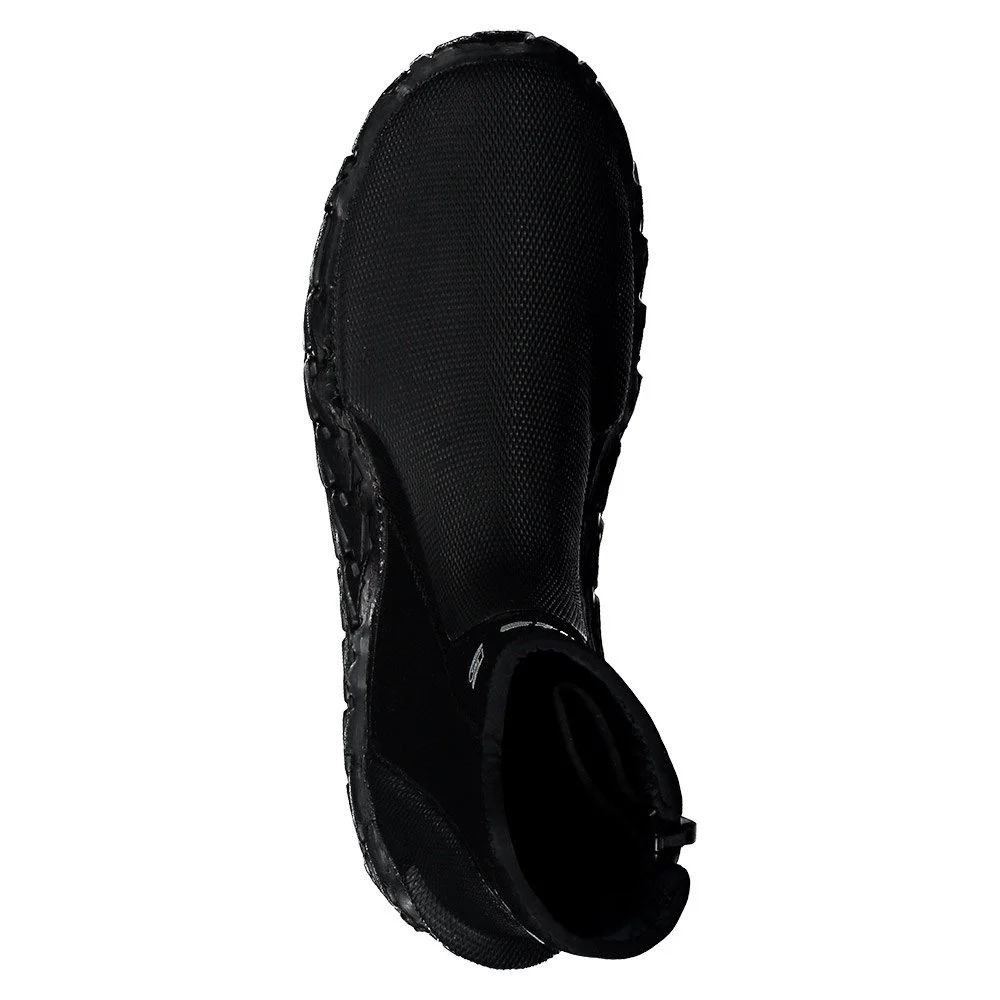 The DELTA 5MM´s upper provides lots of overlap with a wetsuit leg and the zipper is backed by a gusseted water dam. The aggressive anti-slip tread is non-marking, a feature boat owners will like. Both toe and heel caps offer additional protective armor. The heel cap includes a fin strap keeper.