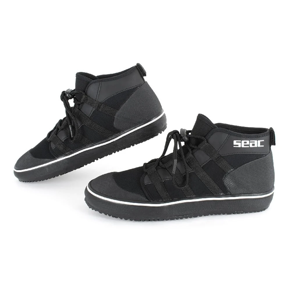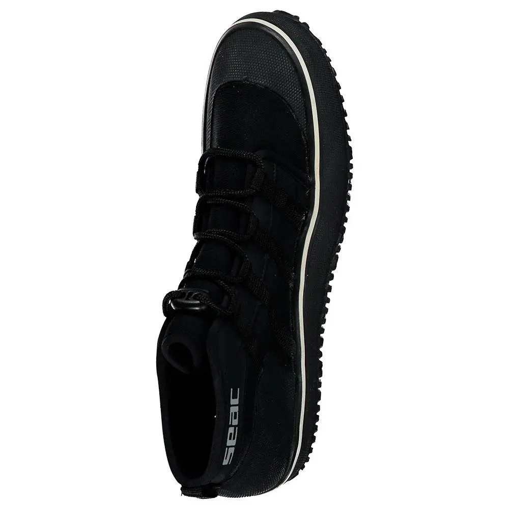 Offering a stable platform for traversing rocky shorelines as well as slippery surfaces on docks dive boats, this pair of SEAC Rock HD 3mm rigid sole boots is ideal for wearing over the soft boot of a drysuit.