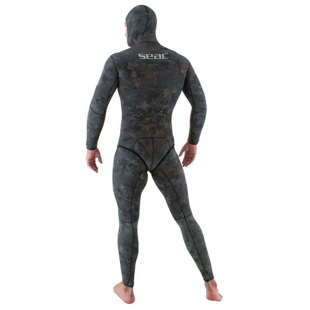 The SEAC Snake wetsuit is composed of the classic combination of high-waisted pants and hooded jacket.